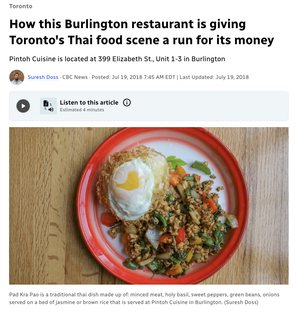 Pintoh Cuisine started in 2016 in Burlington on Lakeshore & Elizabeth with one simple idea: bring the comfort of home-style Thai cooking together with the bold flavours of street food.